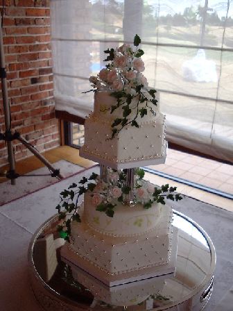 ケーキのデザインは、会場がゴルフ場ということもあり、ホワイトとグリーンを貴重に、淡いピンクのバラを合わせたスタイルになりました。