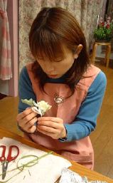 ↑飾りの白バラはリアルフラワーサイズで製作しました。