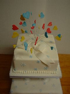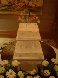 数々のウエディングケーキの本を見て決められたのが、スクエアスタイルのシンプルなデコレーション。